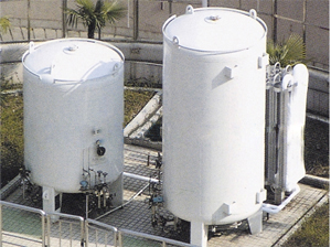 液氧供氧站由液氧贮槽、汽化器、减压装置、管道及报警