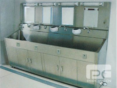 洗手(刷手)池 洗手池主要用来对医护人员进行洗手消毒用,依工作位数不同分为单位、双位、叁位、肆位洗手池。 污洗池为手术区,ICU辅助污物处理清洗设施,一般配置2高1低位一组,低位为拖把池。