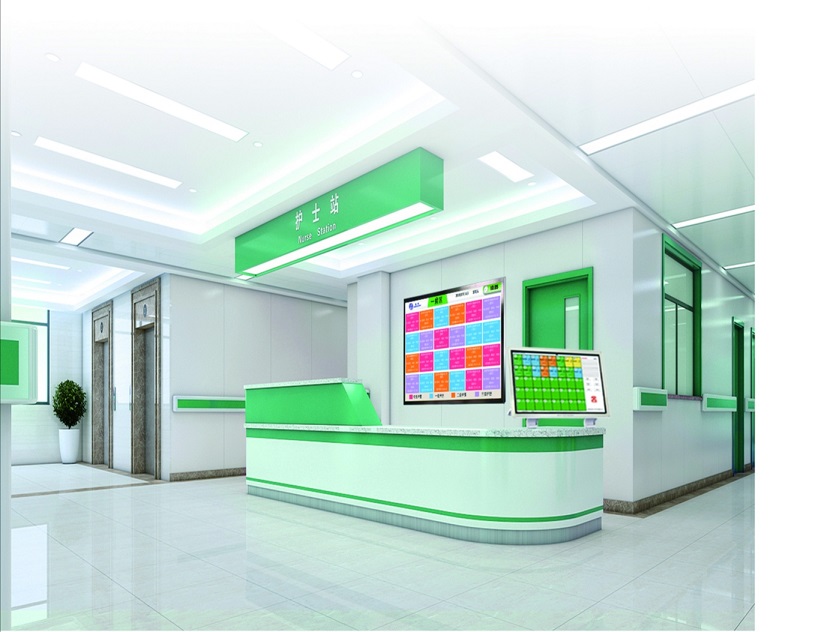 9)中文语音彩色走廊显示屏可滚动显示正在呼叫的床位号以及未处理、加床、换药、护士位置、请求增援等信息。