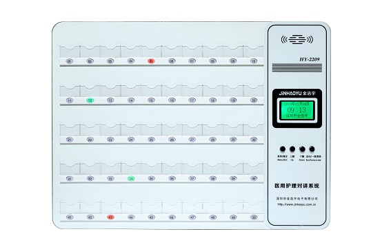 用于值班室、配药间或治疗室,具备语音播报或12首和旋音乐,音量大小可调,声光报警显示病人床号。如18床呼叫。39床等待处理等。病人呼叫一般发生在盐水挂完后,在治疗室化药处显示病人床号便于护士进一步核对病人与所需的药物,以免拿错发生医疗事故。