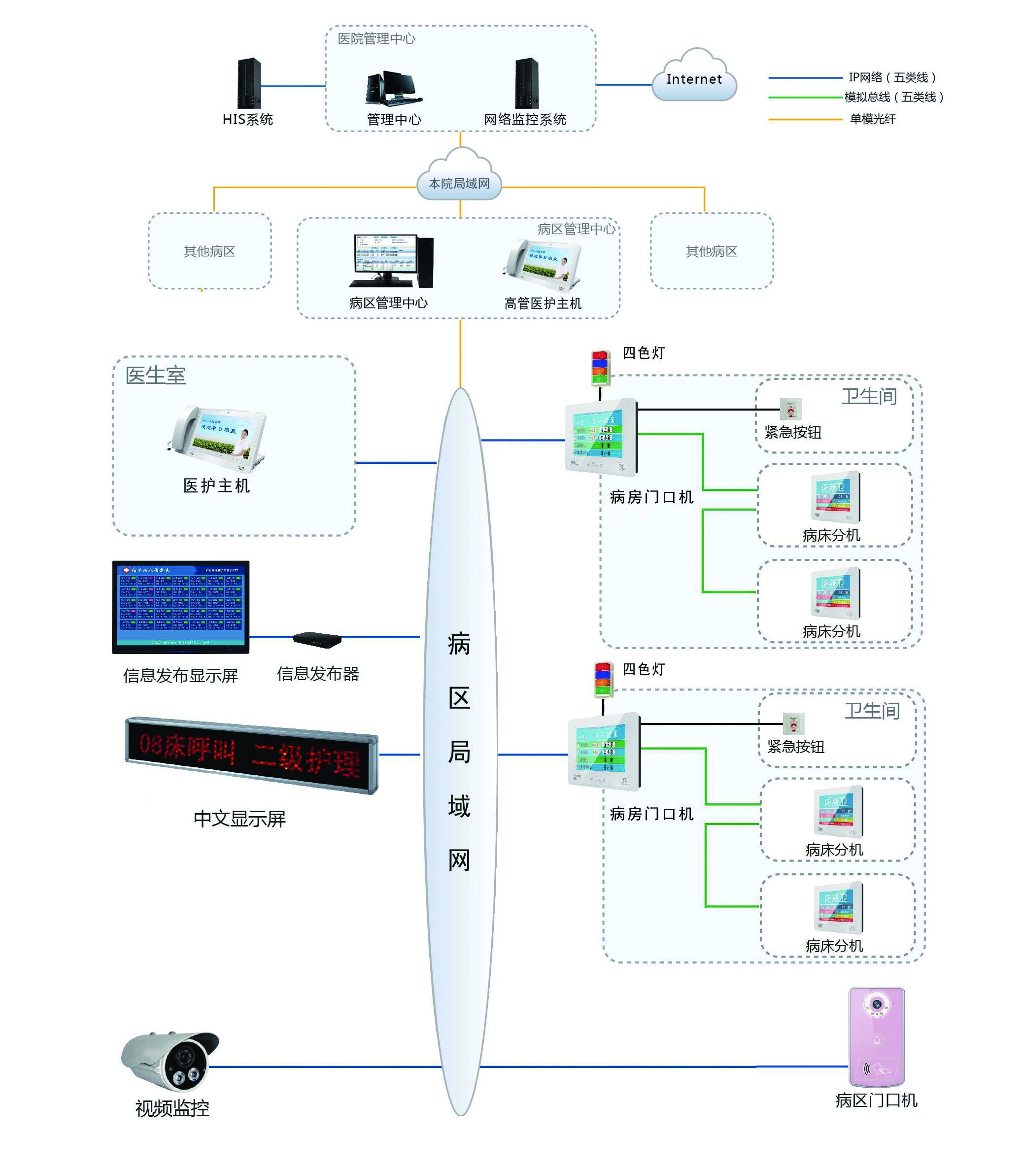 IP网络多媒体医护信息可视对讲系统联网示意图