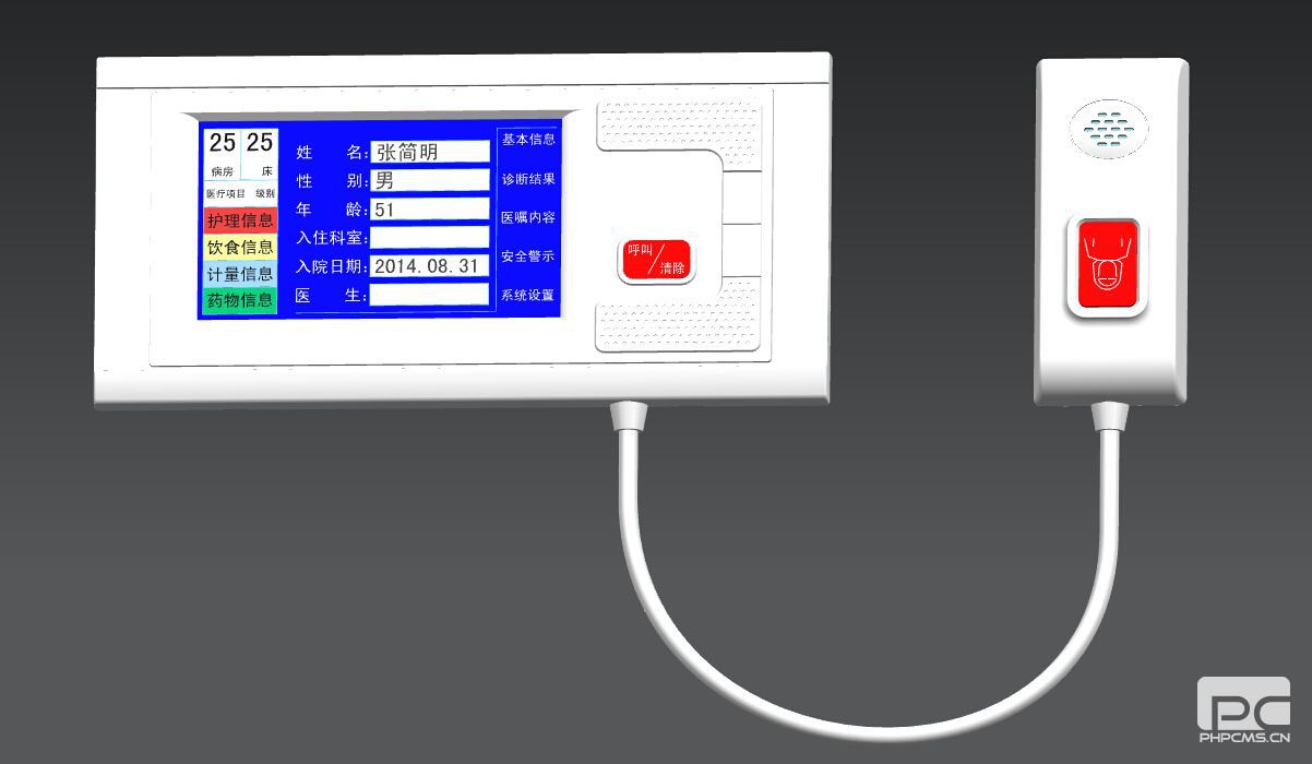 1.信息查询:从HIS中实时读取病人详细信息住院费用,医疗信息,温馨提示,吸氧计时及相关查询。