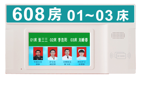 1.信息显示:可显示该房间的房号、各个病床号、责任医生姓名与照片、责任护士姓名与照片;可同步主机显示房 间内的病床呼叫信息。